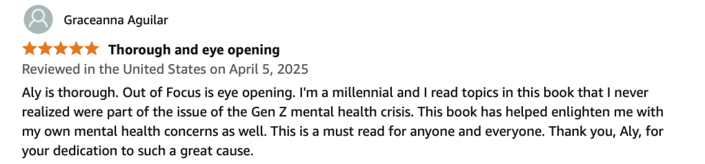 She is the author of Out of Focus: Why Gen Z’s Mental Health Crisis is More Complex Than You Think, a groundbreaking book that blends research, storytelling, and policy insight to unpack the root causes of youth mental health struggles. Aly has spoken at international conferences, advised policymakers, and been featured on national media for her bold yet compassionate approach to systemic change.